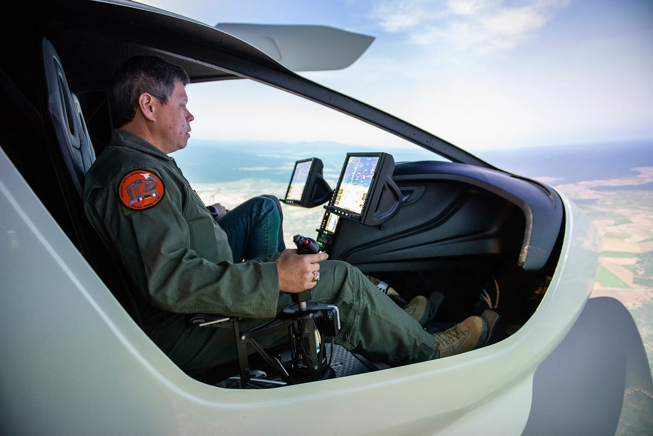 Above: AFWERX airworthiness test and safety lead Hank Griffiths flies BETA’s simulator in preparation for the test flight mission in March 2022. (Photo: BETA Technologies/Brian Jenkins)