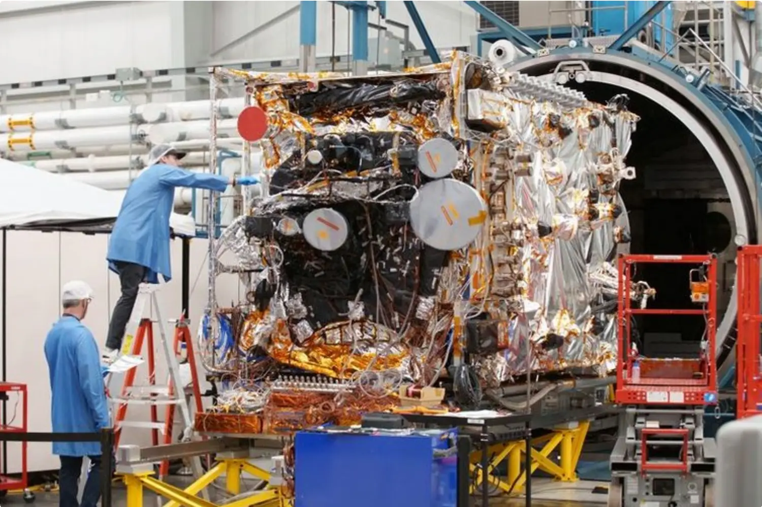 Above: ASBM-1 satellite enters thermal vacuum environmental testing at Northrop Grumman’s satellite manufacturing facility. (Photo: Northrop Grumman)