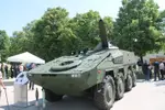Above: This Boxer 8x8 MRAV is fitted with a Patria 120mm NEMO mortar turret which has indirect and direct fire capabilities. (Photo: author)